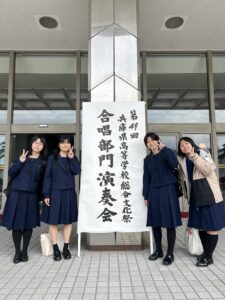 11月24日(月・祝)は明石市民会館アワーズホールにて第49回兵庫県高等学校総合文化祭に出演しました。大ホールでの演奏とともに、当日はリハーサル係を担当し県下の他校の練習の様子を見るなど、とても貴重な経験もさせていただきました。