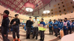 雪が散らつき、時折強くなることもありますが、出発前の天気予報では大寒波!と言われていたことと比べると、概ね良好なコンディションのもと、スキー実習が始まりました。