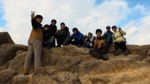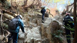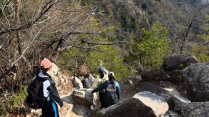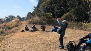 今回は一年生だけの登山ということで、自分たちで道を確認しながら歩いていました。何回か間違った道に進みそうになり、先輩に頼り切っていたのは良くなかったと思いました。大体、固まって行動ができてよかったです。思ったよりも寒く、もう少し重ね着をしたらよかったと反省しました。下りは岩場が多く、足を引っ掛けないように慎重に下りました。今年は新しく後輩が入ってくるので、後輩を引っ張れるように頑張ります。