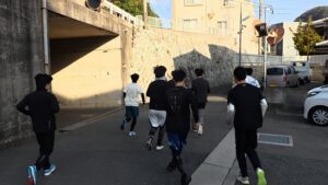 部活停止期間やテスト期間が重なり、何週間ぶりの部活となりましたが、出だしとしては良い走りができたと思います。上り坂や階段ではなるべく歩き、脚に負担をかけないで上ることで体力を温存してバテることも無く完走する事ができました。