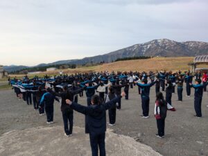 今日も体操を行い、体を起こしました。生徒たちは大きな声を出し、朝から元気いっぱいに活動しています。