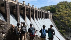 大岩ヶ岳は380m程と低めで、登山道もキツイ所がほとんどなく、登りやすい山だった。スタート地点の道場駅からもそう離れている訳ではなかったので、全体的な歩行時間も短く、先週の愛宕山がキツめの山であったことも相まって、尚の事登りやすいと感じた。更に、途中で千苅ダムの側を通るので、迫力のある放水の涼しさと青空が気分をリフレッシュさせてくれた。初心者にもお薦めできる難度だったので、現2年生にはいつか新入生と一緒に登ってほしい。