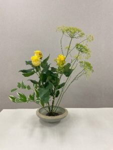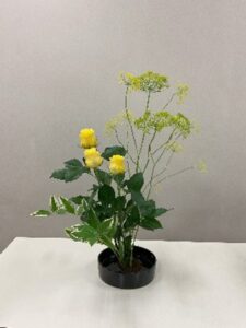 本日の花材:ウイキョウ、バラ、アマドコロ