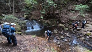 今回の泊登山は、グループで固まって行けたので良かったです。通りすがりの人から、歩荷訓練という言葉を教えてもらいました。テント場に着いて、すぐテントを貼ったので、余裕を持って炊事に取り掛かることができました。食後に皆んなでマシュマロを焼いて食べて楽しかったです。部員全員で出来たらもっと良かったと思いました。2日目も、歩くスピードがゆっくりだったので、それほど疲れませんでした。川沿いを歩くことが多く、道に迷うことがありました。予定よりもはやく解散できて、皆んな怪我なく帰れて良かったです。