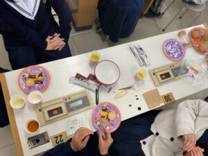 “It was a lot of fun to decorate cookies. Also, I was very happy that many third year students joined this party too. クッキーを飾りつけるのがとても楽しかったです。また、3年生の先輩方も沢山来てきくださり、とてもうれしかったです。“ HA.