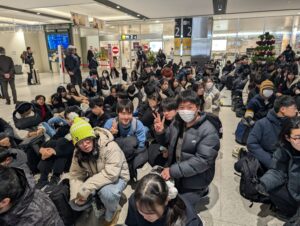 伊丹空港出発組と神戸空港出発組が無事に新千歳空港で合流し、北海道に到着しました。