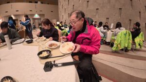 昼食前、激しくふぶいてしまったため、寒い寒いと口々に言っていた生徒たちでしたが、昼食のカレーを食べて元気いっぱい!!先生方もフル充電!!