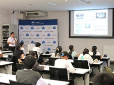 研究所の紹介ビデの市長に続き、附属粒子線腫瘍学研究センターの鈴木実教授から、専門の中性子放射化分析法に関する講演をしていただきました。その講演では、ウランの燃焼により発生する中性子を利用し、医療分野をはじめとして様々な活用ができることを学びました。鈴木教授はその中でも、「ホウ素中性子補足療法」と呼ばれる放射線治療の研究に携わっているそうです。まだ基礎研究の段階ですが、研究が進めば多くのがん患者が救われる可能性を持っている研究だそうです。正直言って、講演の内容が難しすぎて高校生には理解できない部分が多くありました。しかし、その研究がどれほど人々の役に立つのかや、その研究の価値は理解できた気がしました。
