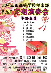 3月20日、フラワータウン市民センターにて、「第26回 邦楽部定期演奏会」を開催しました。