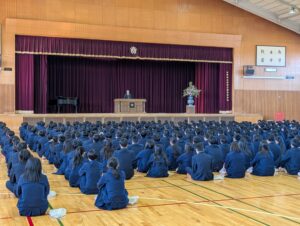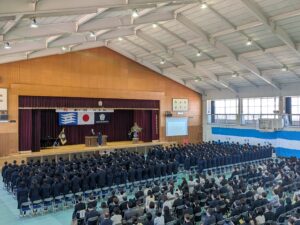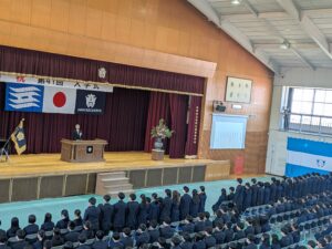 着任式および始業式においては、生徒の皆さんは終始落ち着いた態度で臨み、話に真剣に耳を傾ける姿が印象的でした。その後、2・3年生は大掃除および入学式会場の設営に取り組みました。とりわけ2年生は式場設営を担当し、垂れ幕貼りや椅子並べなどを互いに声を掛け合いながら手際よく進め、わずか50分ほどで準備を完了させてくれました。その姿からは、上級生としての自覚と頼もしさが感じられました。