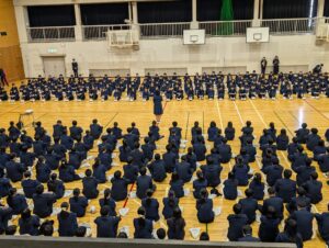 新入生を迎える対面式が、生徒会の進行のもと行われました。優しく頼もしい2・3年生と顔を合わせ、1年生が「北三に入学して良かった」と感じてくれていれば、私たちにとって何より嬉しいことです。41回生の皆さん、学校生活の中で分からないことや不安なことがあれば、気軽に先輩や先生方に相談してください。