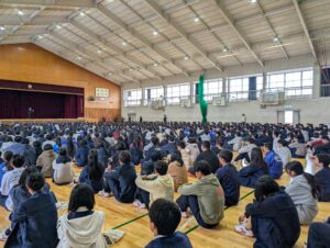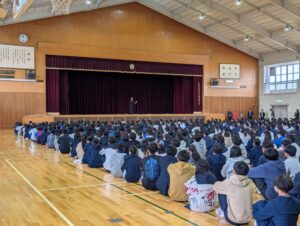 教頭の講評では、阪神・淡路大震災の経験を取り上げ、自分だけでなく周りの人を気遣いながら行動できる人間であってほしい、という旨が伝えられました。