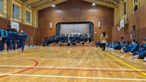 やまとよ体育館にてオリエンテーション・体をほぐす運動・集団行動・レクリエーション・大縄跳びを行いました!