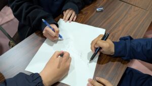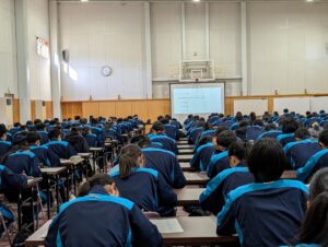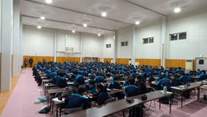 オリエンテーション合宿 学習③英語、学習④地歴公民・理科 オリエンテーリングやクラスアワーで体を動かした後ですが、集中して英語の学習に取り組みました。 夕食をたくさん食べ、体力を回復させた後、最後の学習、地歴公民・理科に取り組みました。