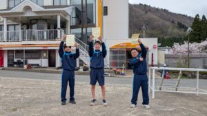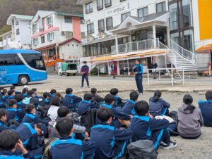 オリエンテーション合宿 退山式 宿舎前広場にて退山式を行い、宿舎の方々に3日間の感謝を伝えました! また、北三カップ(大縄跳び・オリエンテーリング・校歌コンクール)の結果は、1位6組、2位1組、3位5組でした!どのクラスも協力しあい、絆を深めた2泊3日となりました。