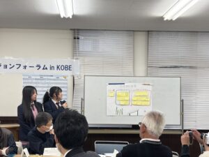 神戸学園都市高校普通科1年生は、各自が取り組んだ「テーマリサーチ」の中から代表者が口頭発表を行い、“自分の住んでいる地域“について調査した内容を発表しました。また、文理探究科1年生は、学園都市周辺を実際に歩きながら地域の魅力や課題を探る「学園都市ワンダリング」について、代表生徒がその成果を発表しました。さらに、伊川谷北高校2年生は、これまで取り組んできた課題研究について口頭発表およびポスター発表を行い、調査・分析の結果や考察について説明しました。 生徒たちは互いの研究に触れながら多様な視点を得て、探究への理解をさらに深めました。