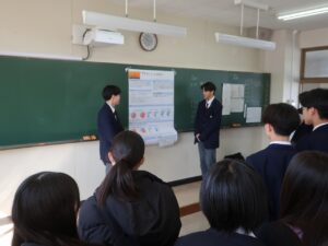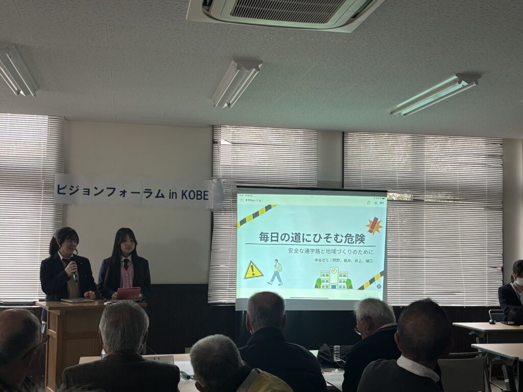 令和8年3月7日、神戸県民センター 県民躍動室県民課ビジョン・青少年担当が主催する「ビジョンフォーラム in KOBE」が神戸市立ふたば学舎で開催され、本校の探究グループ2チームが参加しました。フォーラムでは、これまで取り組んできた探究活動についての報告を行うとともに、大学生や地域団体とのグループディスカッションにも参加しました。さまざまな立場の方々と意見を交わす中で、多角的な視点から地域の課題について考えることができました。