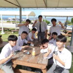 沖縄でしか見ることのできない多くの海の生物や雄大に泳ぐジンベイザメを前に生徒たちも大興奮!インターネットなどで様々なものが手軽に見られる時代ですが、現地で本物に触れ、五感で楽しむことができました。