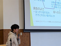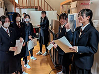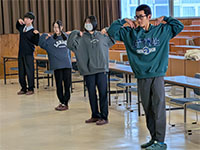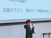 県の個人部門強化合宿に参加した部員たちが,報告会を開きました。ストレッチや口の運動,感情の込め方など,合宿で習ってきたことを部内で共有しました。