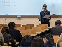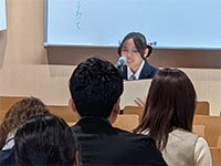 午後の模擬審査では,じゃんけんを勝ち抜いた部員が,審査される役として舞台上で発表しました。