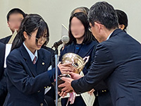 ミニコンテストは,アナウンス部門で2名が佳作,朗読部門は1位でした。立派な優勝カップを授与していただきました。