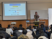 雪の降る中,東播磨・淡路地区の研修会に3名の部員がお邪魔しました。午前中はアナウンス・朗読のミニコンテスト,午後からは能崎まゆみさん(神戸セルフブランディング協会)の講習会でした。