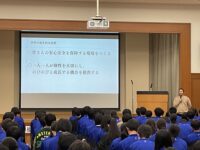 開講式後に、講義①「校長先生講話」、講義②「北高生活オリエンテーション1 生活編」が行われました。