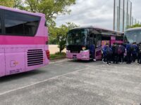 1〜7組の全てのバスが学校に到着しました。1泊2日の合宿で疲れがたまっていると思います。今日はしっかり休んで、来週からの授業に備えましょう!通常授業が始まるので、気持ちをしっかり切り替えてください!