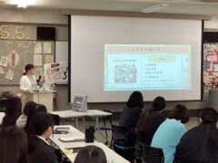 5月24日(金)、中間考査最終日テスト終了後、コース1年生35名はJICA関西(神戸市中央区)に向けて出発しました。現地到着後、まずエスニックランチで腹ごしらえ。初めてのエジプト料理に生徒達は興味津々、「おいしく完食しました!」と堪能した様子でした。昼食後は館内の施設を自由に見学。観覧室には、JICAのSDGsの取り組みを紹介する展示や、地球規模の課題について体験的に理解できる仕掛けが多くありました。民族衣装の着用を体験できるコーナーでは、世界各国の帽子や衣装を着て服装の違いから文化の違いを楽しみながら学ぶこともできました。約30分の施設見学後、職員の方からJICAの活動内容、発展途上国への支援の在り方などの説明を聞きました。続いて、実際に青年海外協力隊の一員としてタイの聾学校で活動された方の講演を聴きました。タイの聾学校での生活を聞いたり、日本とタイにおける聾者への支援の違いを知ったり、タイの手話を体験したりしました。このJICA訪問を通して、国際協力に興味を示した生徒も多く、進路の選択肢の1つになったようです