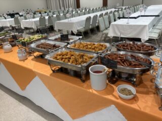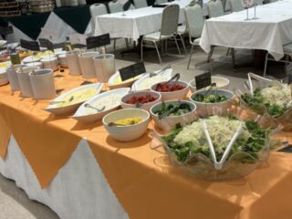 2日目の朝食は、カヌチャベイリゾートのレストランでいただきました。外は雨模様でしたが、明るい会場には和洋さまざまな料理が並び、生徒たちは元気に朝食を楽しんでいました。