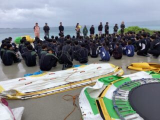 マリン体験 2025 11/18 41回生 41回生修学旅行 2025年11月18日 カヌチャベイはあいにくの雨模様でしたが、しっとりとした海の景色もまた魅力的でした。雨に濡れながらのマリン体験は少し大変でしたが、仲間と声を掛け合いながらバナナボートやスノーケリング、オーシャンを楽しみ、特別な思い出になりました。 41回生 41回生修学旅行 1日目の夕食 2日目昼食 関連記事 2日目昼食 1日目の夕食 修学旅行1日目の活動 沖縄到着 空港到着 R7 修学旅行荷物発送 10/97限 明石市長による講話 神戸大学特別講座