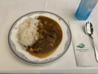 本日の昼食は、活動後にいただいた牛すじ煮込みカレーでした。深い味わいのカレーにやわらかい牛すじがよく煮込まれており、体験を終えてお腹が空いていた生徒たちには格別の美味しさだったようです。友だち同士で「美味しい!」「もう一杯いける!」と笑顔が広がり、午後の活動へ向けて元気を取り戻す時間となりました。