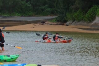 ヤンバル自然塾で、マングローブ観察とカヤック体験を行いました。ガイドの方の説明を聞きながら、独特の根を広げるマングローブの姿を間近で観察し、沖縄の自然の豊かさを実感しました。カヤックでは、静かな水面を進みながら周囲の景色を楽しみ、生徒たちからは笑顔や歓声が上がっていました。自然の中で学び、体を動かす充実した時間となりました。