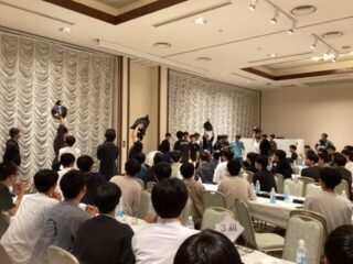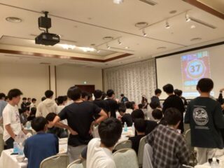 修学旅行3日の夜は、学年全体でレクリエーションを行い、大盛り上がりでした。ビンゴ大会では次々と数字が呼ばれるたびに歓声が上がり、景品を手にした人は満面の笑みでした。借り人競争や土嚢上げ、似顔絵に加えて最後に有志の出し物やダンスで、学年の一体感を強く感じる楽しい夜になりました。