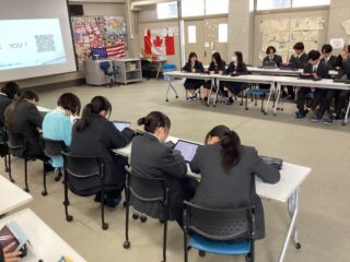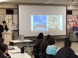 2月12日(木)に文理探究科1年生(42回生)が、関西学院大学総合政策部の学生2名を講師としてお迎えし、国際理解講座を受けました。お二人は学生国際支援団体であるBridge for Childrenで活動をされており、そこでの活動経験や海外でのインターンシップについて話をしていただきました。フィリピンのゴミの山で裸足で暮らす子供たちに日本で集めた靴を送る活動、孤児院に衣服の支援、また、現地の小学校での日本文化紹介活動など、貧困や教育問題を中心にわかりやすく説明していただきました。日本でも子供や家庭のための支援施設でボランティアをされていて、草の根の活動に生徒たちは興味津々でした。質問も多く出て、生徒たちにとっても大きな刺激になったことでしょう。多くの生徒がこれからの国際理解活動や探究活動のヒントをもらったよい講座でした。