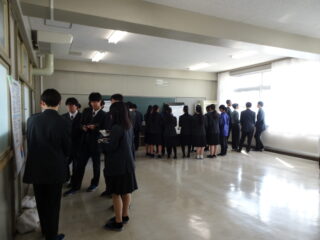 今年は1年生が明石市の現状の課題から施策の提言、2年生が興味を持った分野に関する内容に関してポスターセッションの形式で発表を行いました。来賓の方から探究活動を楽しんでいた様子が伝わってきたと講評いただいたように、当日の探究祭も含め1年間の活動が充実したものとなりました。