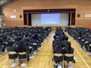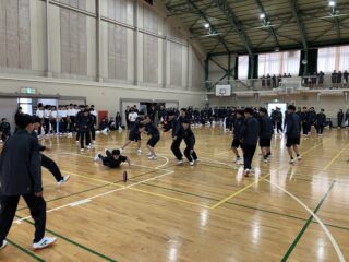 4月13日(月) 本校体育館において、教務部・ICT推進部・進路指導部・生徒指導部・総務部より高校生活に係る諸規則についての話を、国語・数学・英語からは高校における学習の仕方を学び、最後に校歌練習を行いました。午後はドッヂビー(スポンジフリスビーをボールの代わりに投げる)で盛り上がりました。明日から始まる本格的な高校での学びを前に、リラックスしクラスの親睦を深める良い時間を過ごすことができました。