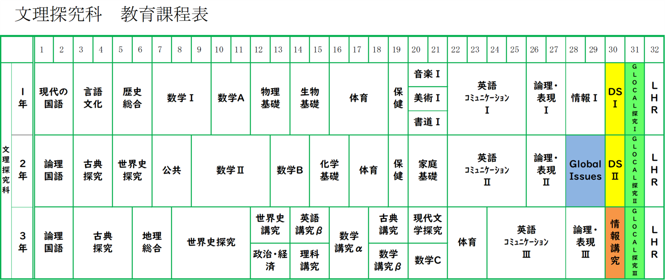 ※ GLOCAL探究ⅠⅡⅢ(上図緑)は、総合的な探究の時間の本校での名称です。