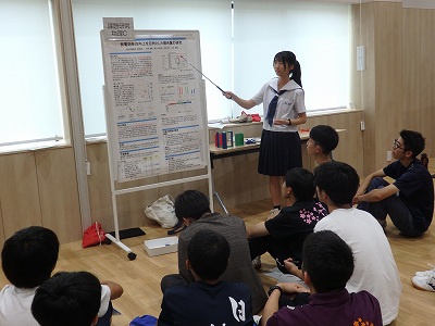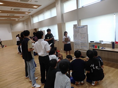 現在行っている研究の途中経過やこれまでの成果、今後の課題等をポスター発表しました。発表と見学をローテーションし、お互いの研究について質問しあいます。6限には1年生理数科が、放課後には3年生理数科も見学しました。
