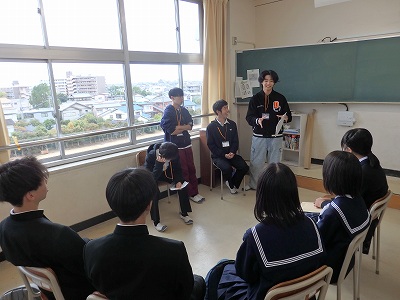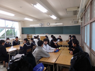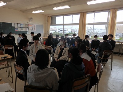 第2部では、中学校ごとのグループに分かれて教室に移動し本校在校生とグループ懇談をしました。出身中学の後輩たちと語り懐かしい中学時代を思い出しながら、受験勉強のアドバイスをしたり、中学生からの質問に答えながら東高の魅力を伝えることができたようです。