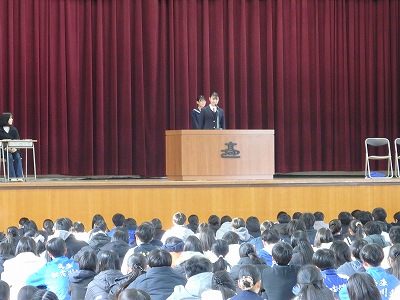 2026.03.09 令和8年度生徒会会長決定 次期生徒会の会長が決定しました。今年度は立候補者が1名だったので、信任投票となりました。2/5に立会演説会が行われ、立候補者と応援弁士が演説を行いました。翌2/6に信任投票が行われ、信任多数で無事に令和8年度の生徒会長が決定しました。 以下、令和8年度の生徒会長に決まった金子彩花さんのコメントです。 この度、令和8年度生徒会長に就任しました金子彩花です。加古川東高校らしい個性あふれる高校にできるよう、全力を尽くします。一年間よろしくお願いします。 SNSでもご購読できます。