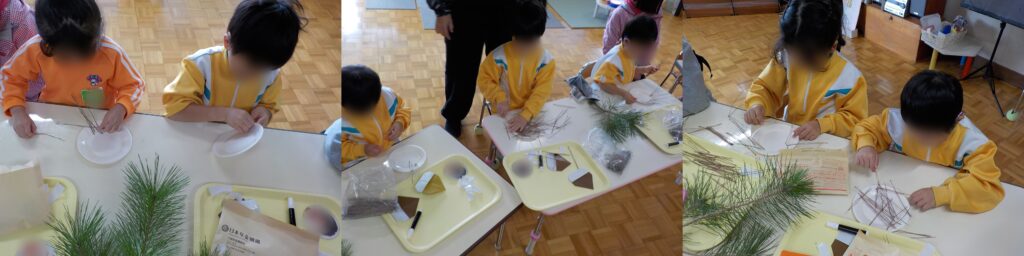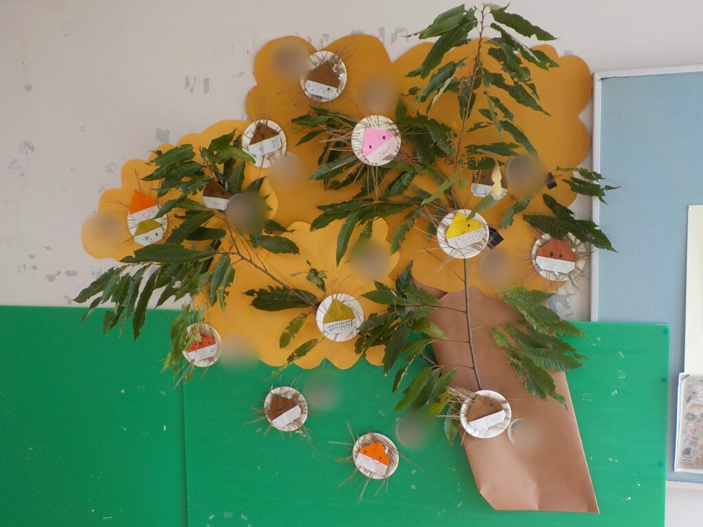 幼稚部のなかよし遊びで11月の掲示の製作をしました。