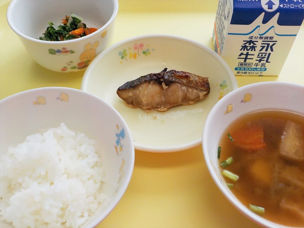 ごはん さんまのおろし煮 ほうれん草とひじきの和え物 みそ汁 牛乳