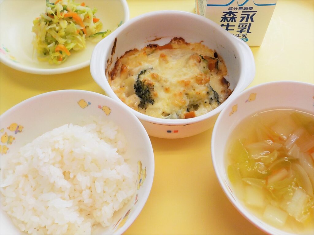 幼稚部のなかよし遊びで11月の掲示の製作をしました。