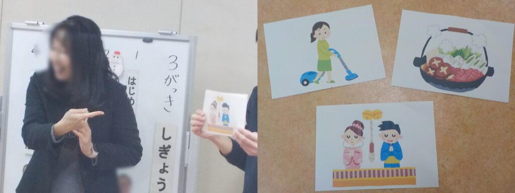 こばとでは、登校時のカレンダーワークで日付を確認して出席ノートにシールを貼ったり、「昨日、今日、明日」などの日にちの流れを理解するために教室に掲示したり、カレンダーを使いながらお話をしたりと、日めくりカレンダーは欠かせない教材となっています。