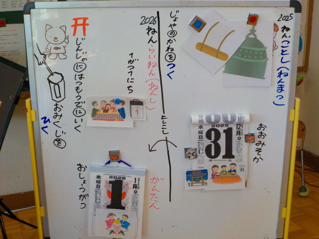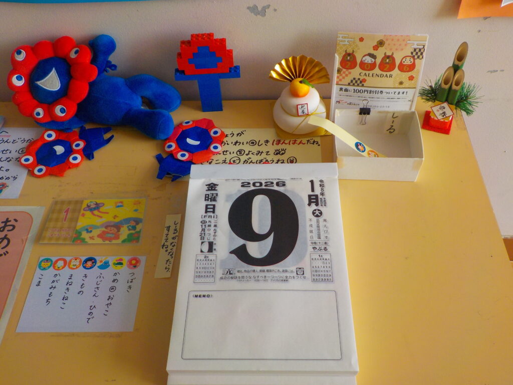 昨年末、こばとの卒業生から、各クラスに令和8年度の日めくりカレンダーのプレゼントをいただきました。