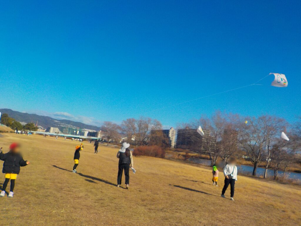 天気も良く、風もあり、凧あげ日和でした。高く上がって楽しかったね!!