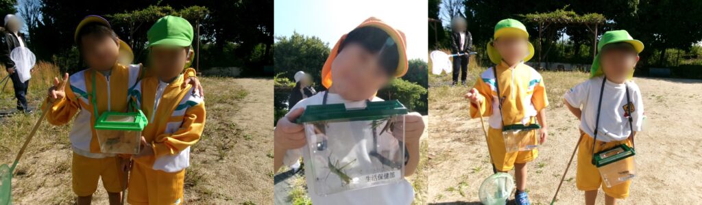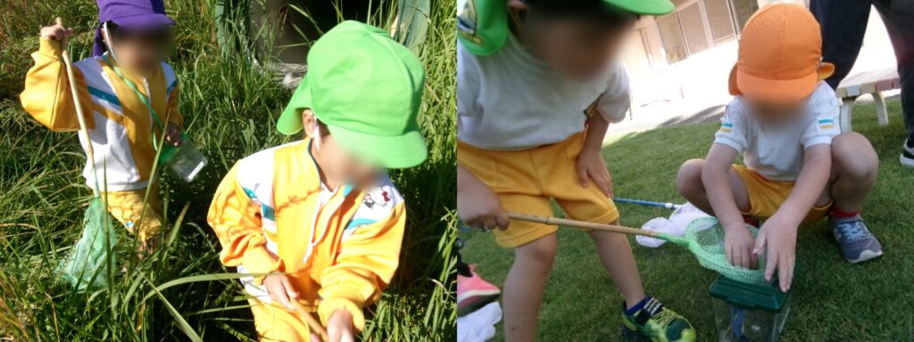 今日の幼稚部のなかよし遊びは「虫とり」でした。バッタやコオロギ、ちょうちょやトンボなど今の季節はいろいろな虫がたくさん!