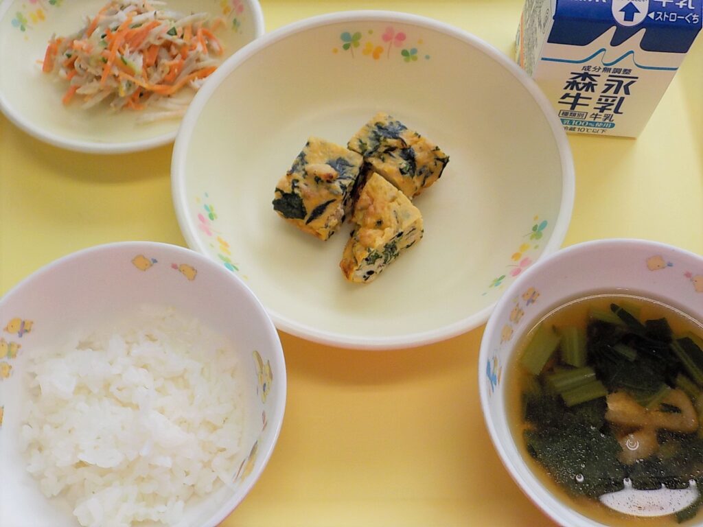 ごはん 千草焼き ごぼうサラダ みそ汁 牛乳