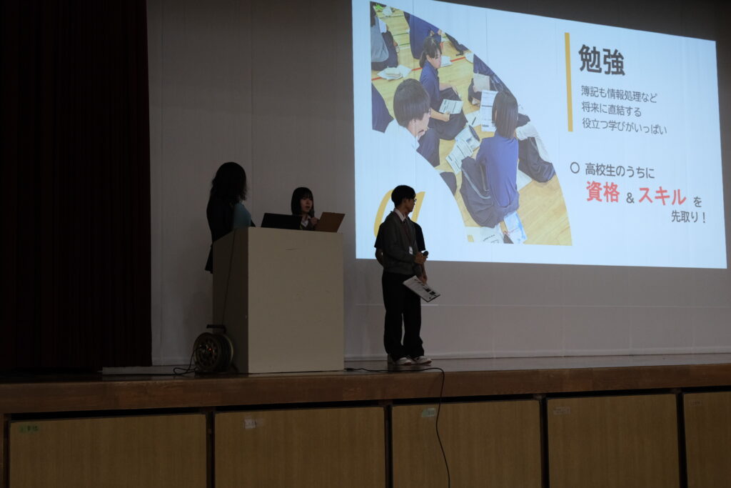 10月25日(土)午前に学校見学会、午後には特色学科相談会を行い、多くの中学生や保護者の皆さんにご参加いただきました。ありがとうございました。当日は在校生もボランティアとして参加し、県商の魅力を一生懸命伝えてくれました。実は、そのボランティアの生徒たちも、数年前は中学生としてこの学校見学会や特色学科相談会に参加し、当時の先輩ボランティアに憧れて県商に入学してきたそうです。来年度、今回参加してくれた皆さんと県商でお会いできるのを楽しみにしています。